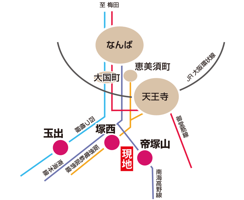 | 交 通 | 南海高野線 帝塚山駅 徒歩約4分 阪堺電軌阪堺線 塚西駅 徒歩約4分 大阪メトロ四ツ橋線 玉出駅 徒歩約9分 |